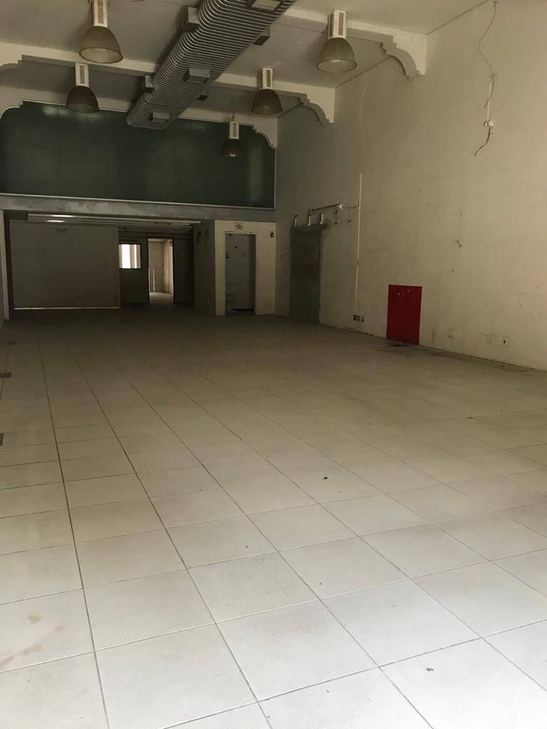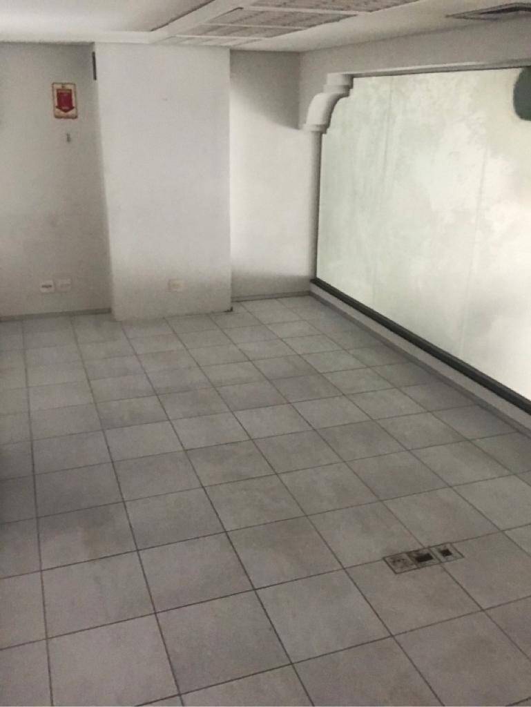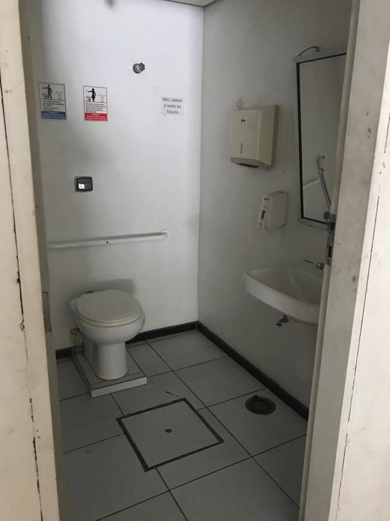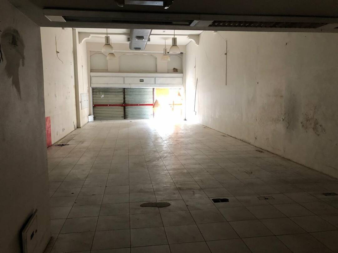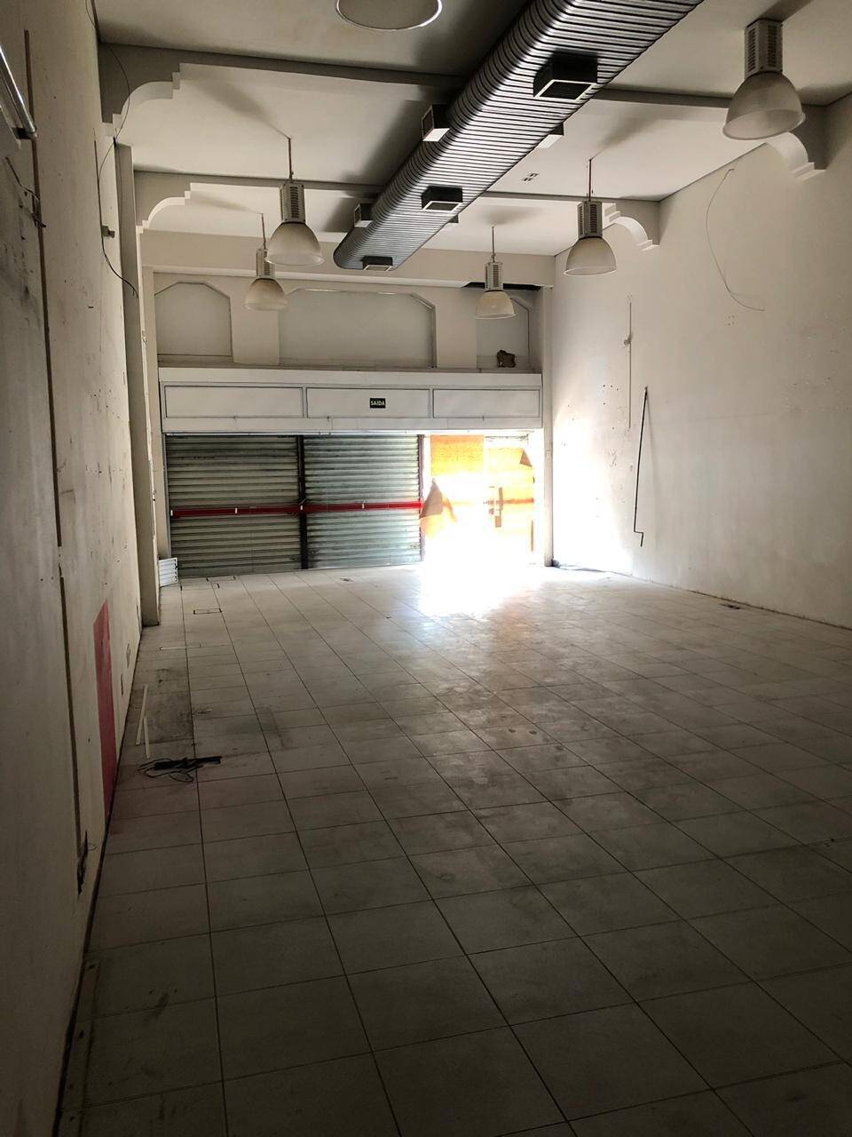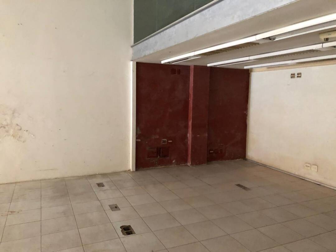 Primeiro andar: loja grande com banheiro acessível, porta de vidro e de aço em perfeito funcionamento na entrada, instalação para banco com tomadas no chão, instalação elétrica nova