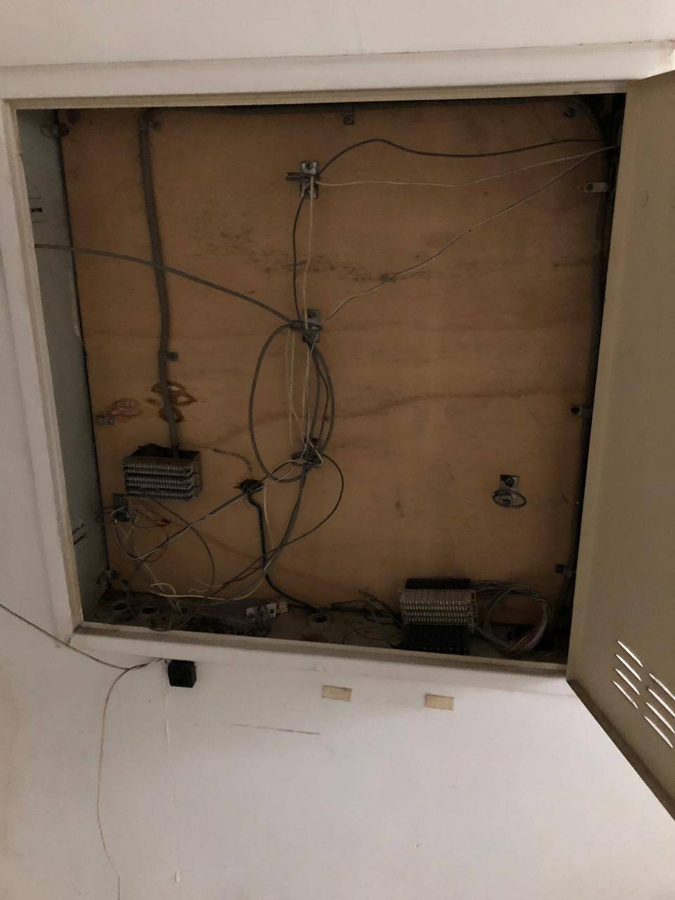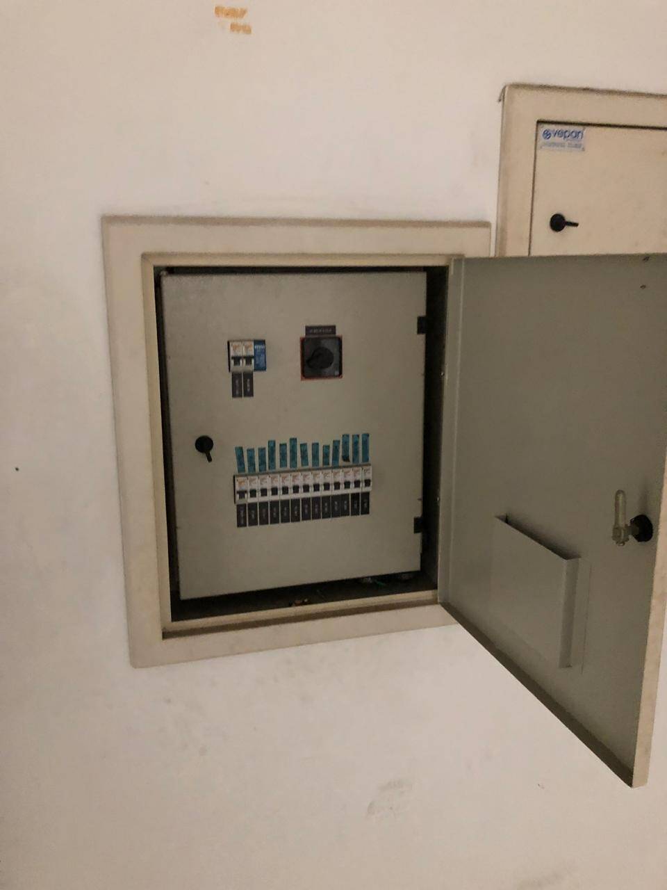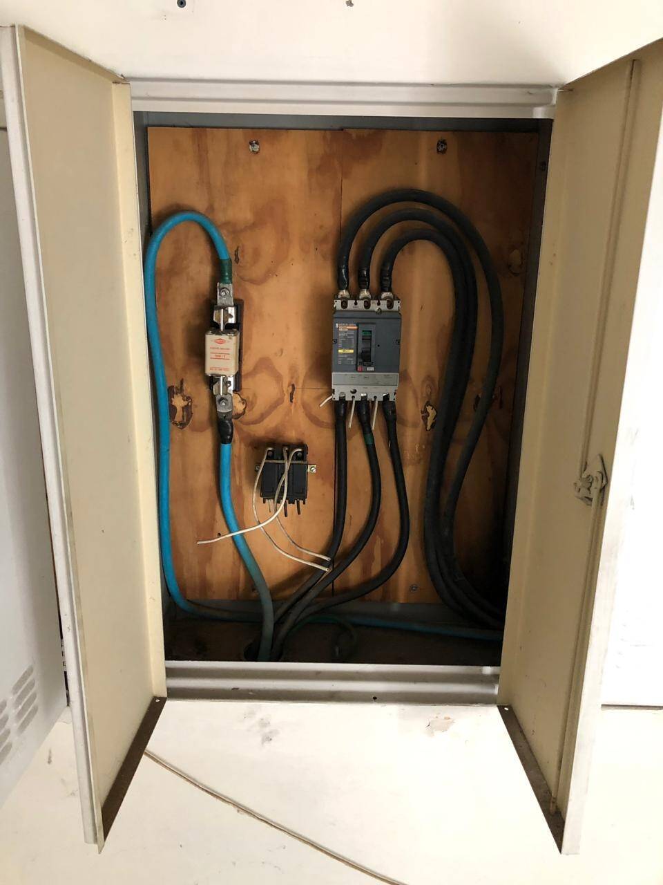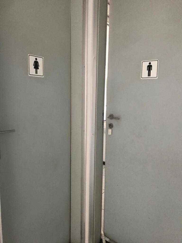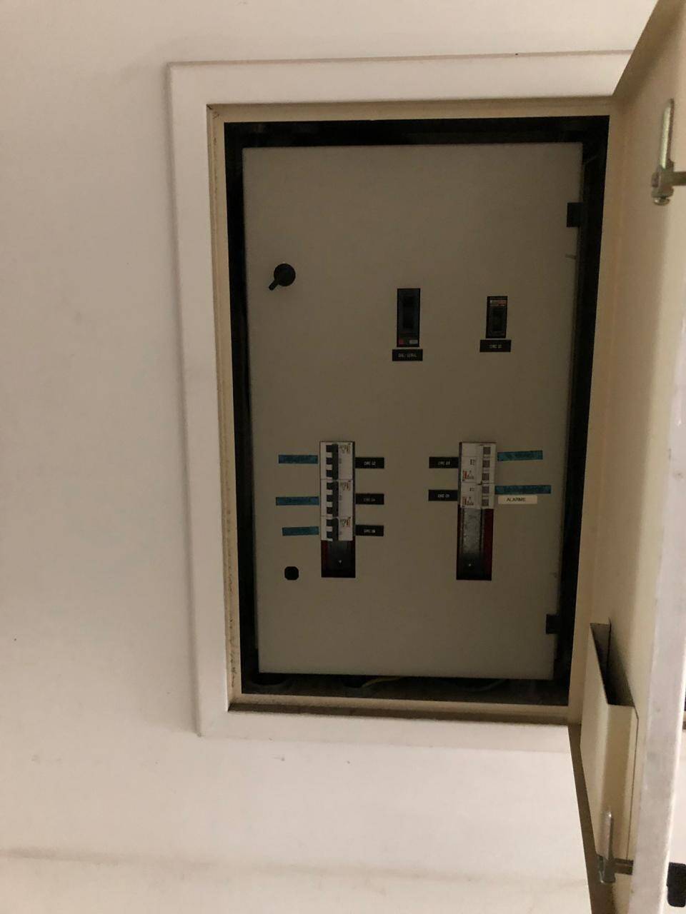 Primeiro andar: loja grande com banheiro acessível, porta de vidro e de aço em perfeito funcionamento na entrada, instalação para banco com tomadas no chão, instalação elétrica nova