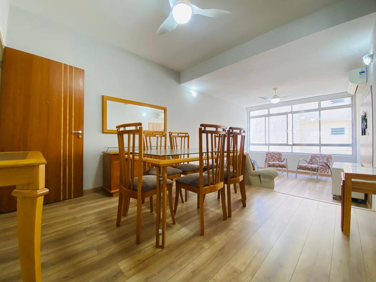 Apartamento para alugar mobiliado na orla da praia da Pompéia - Santos. Possui:-> Sala 02 ambientes com ar condicionado;-> 2 quartos com armários e ar condicionado;-> 2 banheiros - 1 social e 1 de serviço;-> Cozinha toda equipada;-> Dependência de empregada com armário;-> Área de...